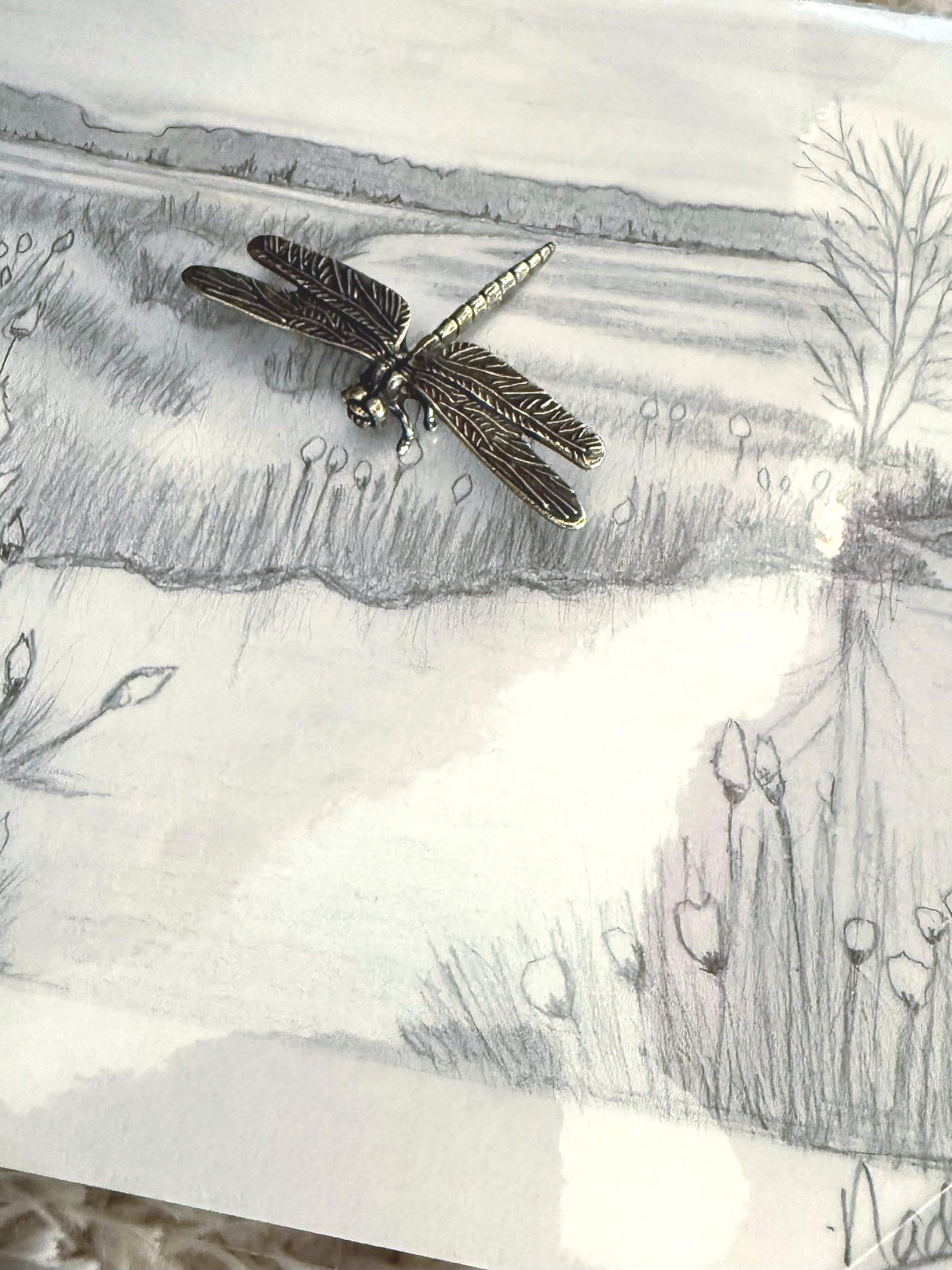 Op tafel liggen door mij getekende landschappen, zoals duinen, bos, rivierdelta of heide. Je kiest het landschap dat jou op dit moment roept.